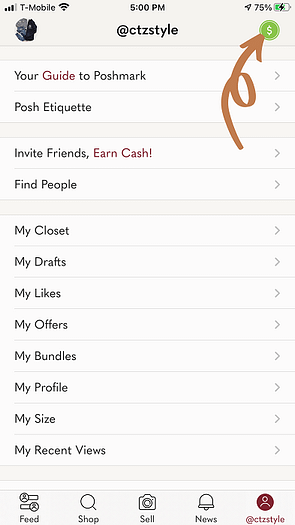 Head into your Poshmark app to redeem your money from any sales you make on Poshmark. You can request a check for the money you're owed or you can choose to set up direct deposit with your bank account.